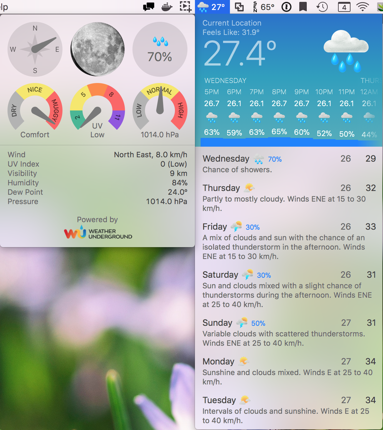 隨著 macOS High Sierra 的更版,iStat Menus 也順勢推出最新的第 6 版。除了原有的功能外,這次的更版更加進了天氣資訊的模組。下拉選單顯示的資訊也可以更彈性的調整:切換開關子項目、調整子項目順序以及調整配色等。