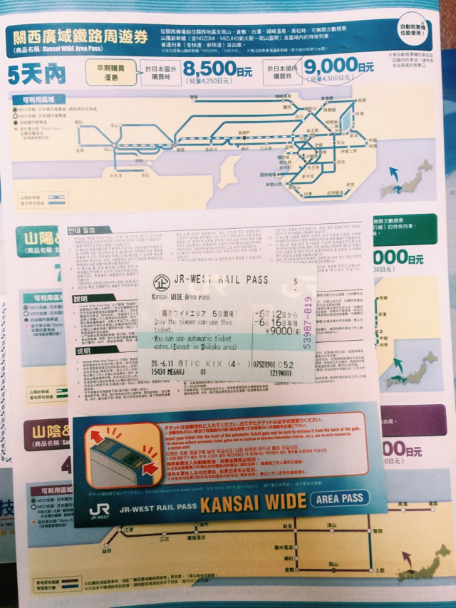 由於這次要到尾道幾天,中間可能會在岡山、姬路或倉敷幾處走走逛逛,所以接下來就是到機場一樓大廳的觀光情報中心購買「關西廣域鐵路周遊券」。這是可以在指定日期開始 5 日內,於關西地區無限次數搭乘山陽新幹線以及區域內的特快列車、普通列車自由席等。