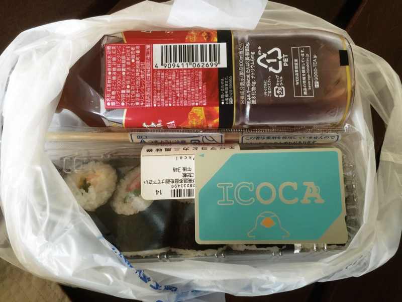 買完周遊券後,再來就是到 JR 的自動販賣機購買 ICOCA 卡及儲值。這是類似台灣的悠遊卡,可以搭火車、公車以及在便利商店買東西。這樣也省去每次旅行幾天下來,身上總是一堆零錢,又累贅又不方便。買好後就順便到機場對面的 LAWSON 試刷買點東西充個饑。