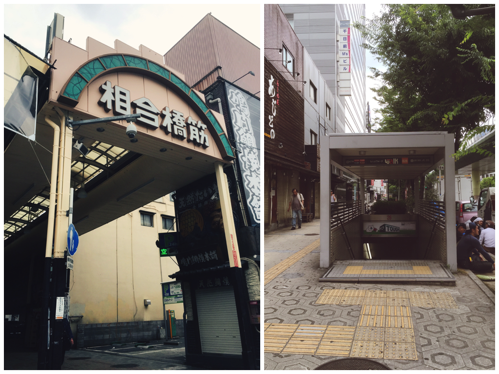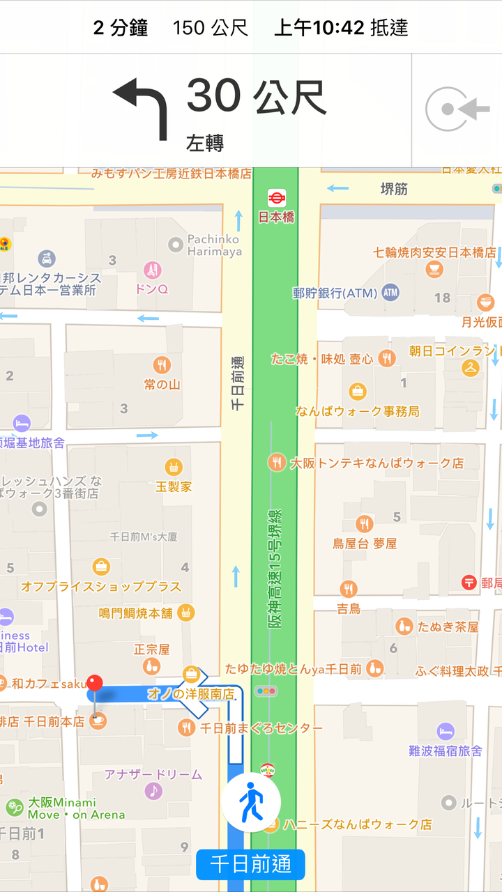 因為文章中除了有地址外,也有簡單的交通資訊。所以依著文中的描述,先搭乘御堂筋線到難波站,再開手機的地圖輸入地址定位。由於難波站是個多鐵交會的大轉運站,光出口就近 20 多個左右。只能先大致抓個方向從 14 號出口上來,再靠著地圖導航,差不多 5 鐘路程就走到了。不過,看了一下周遭的地理位置後,發現其實旁邊就是 26 號的地下街出口,上來進相合橋筋再走個幾十公尺就是了。