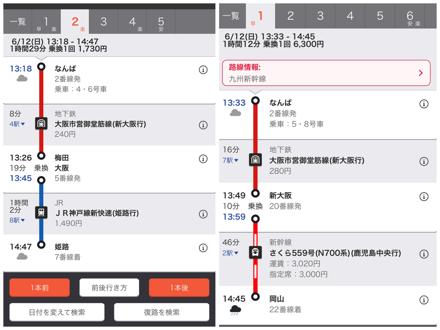查詢不同的路線組合後,發現岡山倒是可以搭乘新幹線。而手上這張鐵道周遊券的可用範圍就含括了新大阪到岡山間的新幹線。唔唔,那就考慮先來去岡山好了,畢竟是生平第一次有機會搭新幹線。決定了!就一小時後出發,目標:新幹線,啊,不是,岡山才對。呃,不過,路線檢索結果中岡山旁邊那朵飄雨的雲是怎麼回事啊⋯⋯啊?!