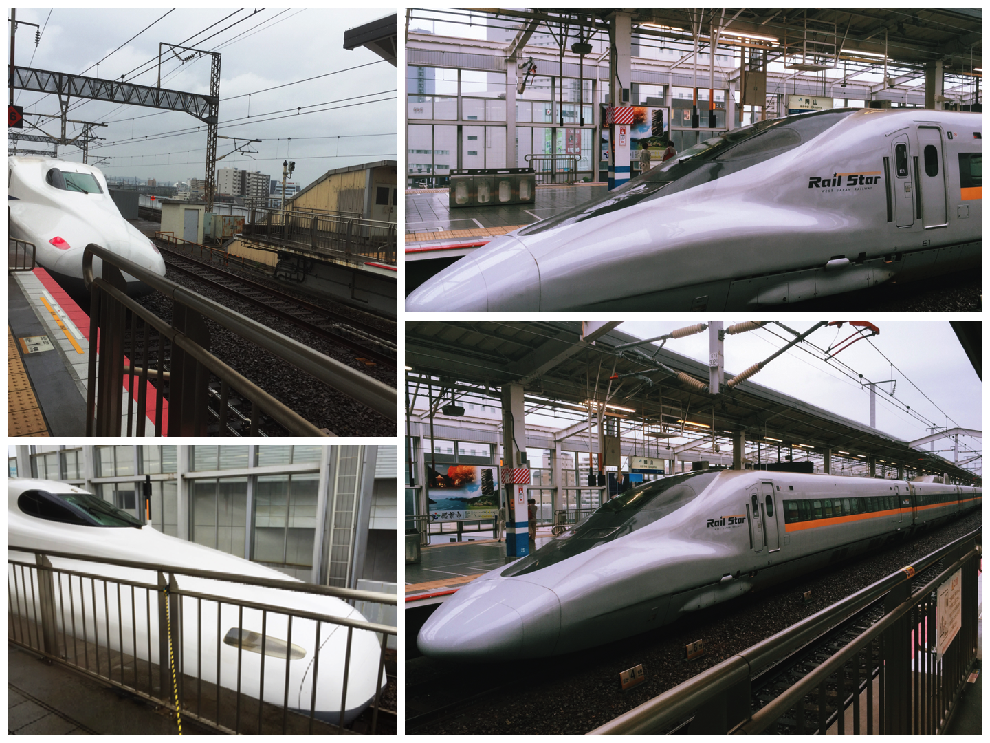 大約 40 分鐘左右就抵達岡山,果然不意外的飄著雨。除了再拍幾張這次搭的列車頭,對面月台也剛好停靠另一列新幹線列車。當然,一併入鏡留念囉。