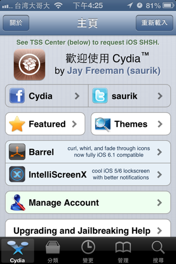 昨夜終於還是決定把 iPhone 給 JB 了,裝了幾個網路上推薦的 App ,果然大好!