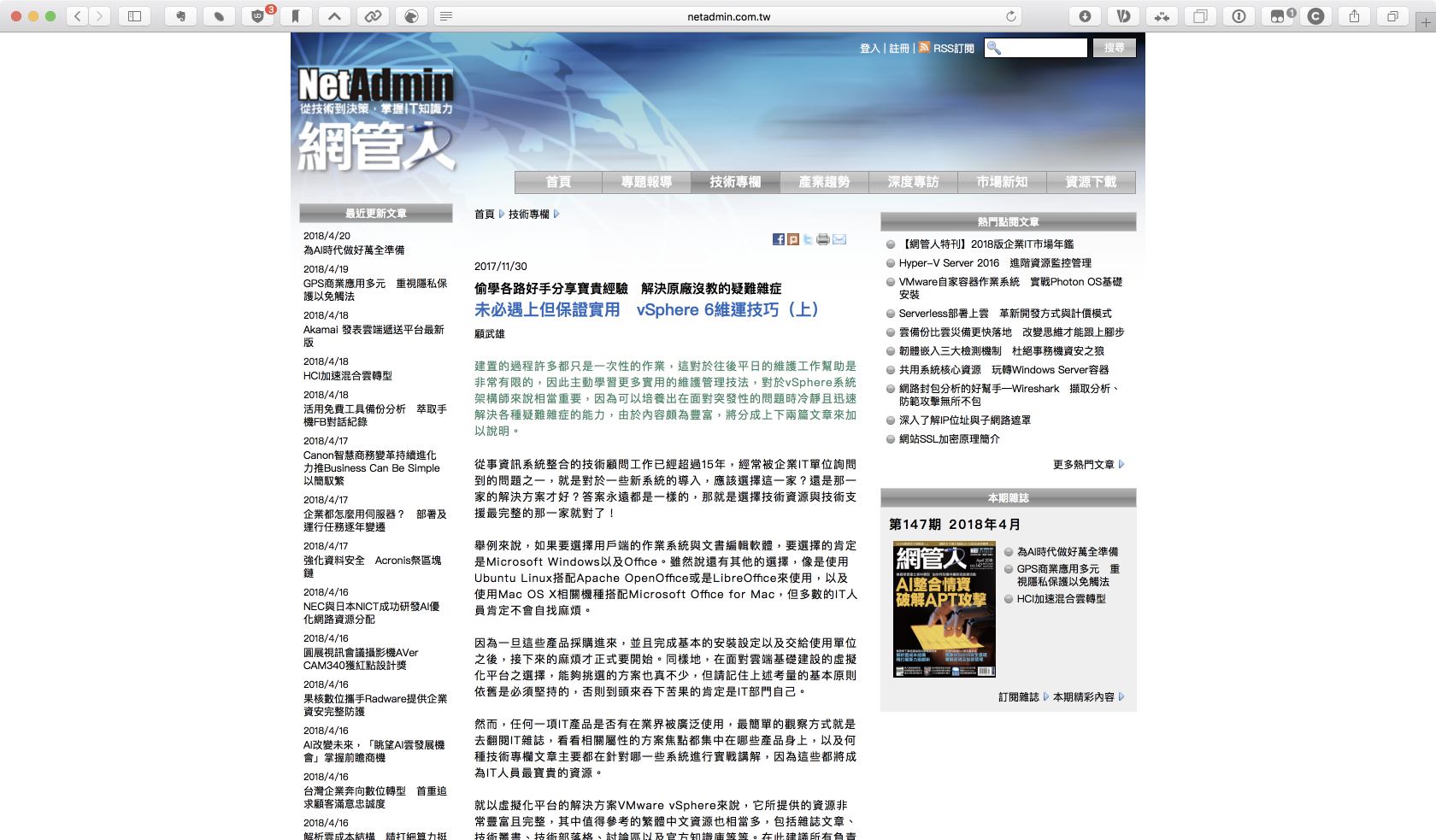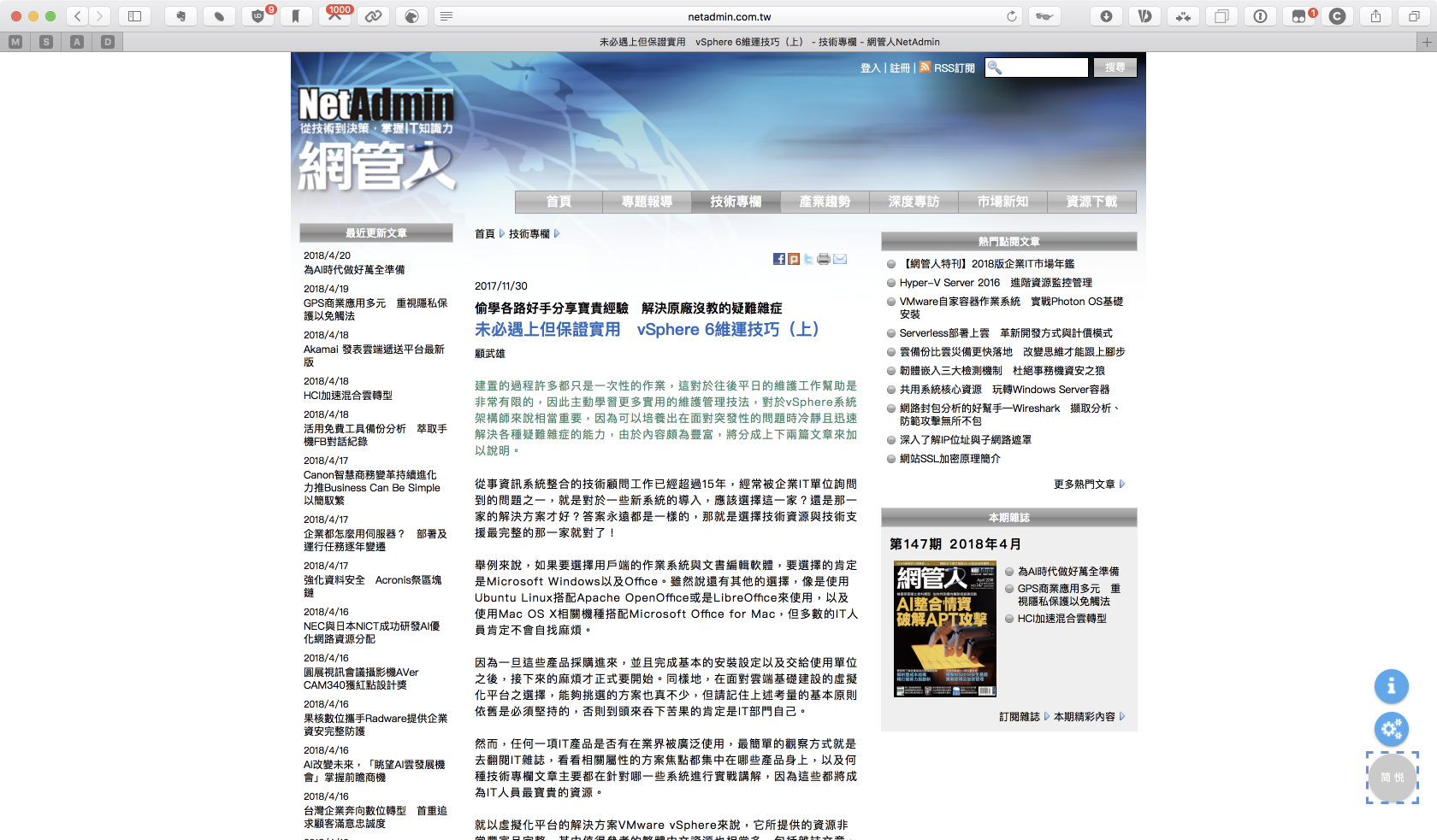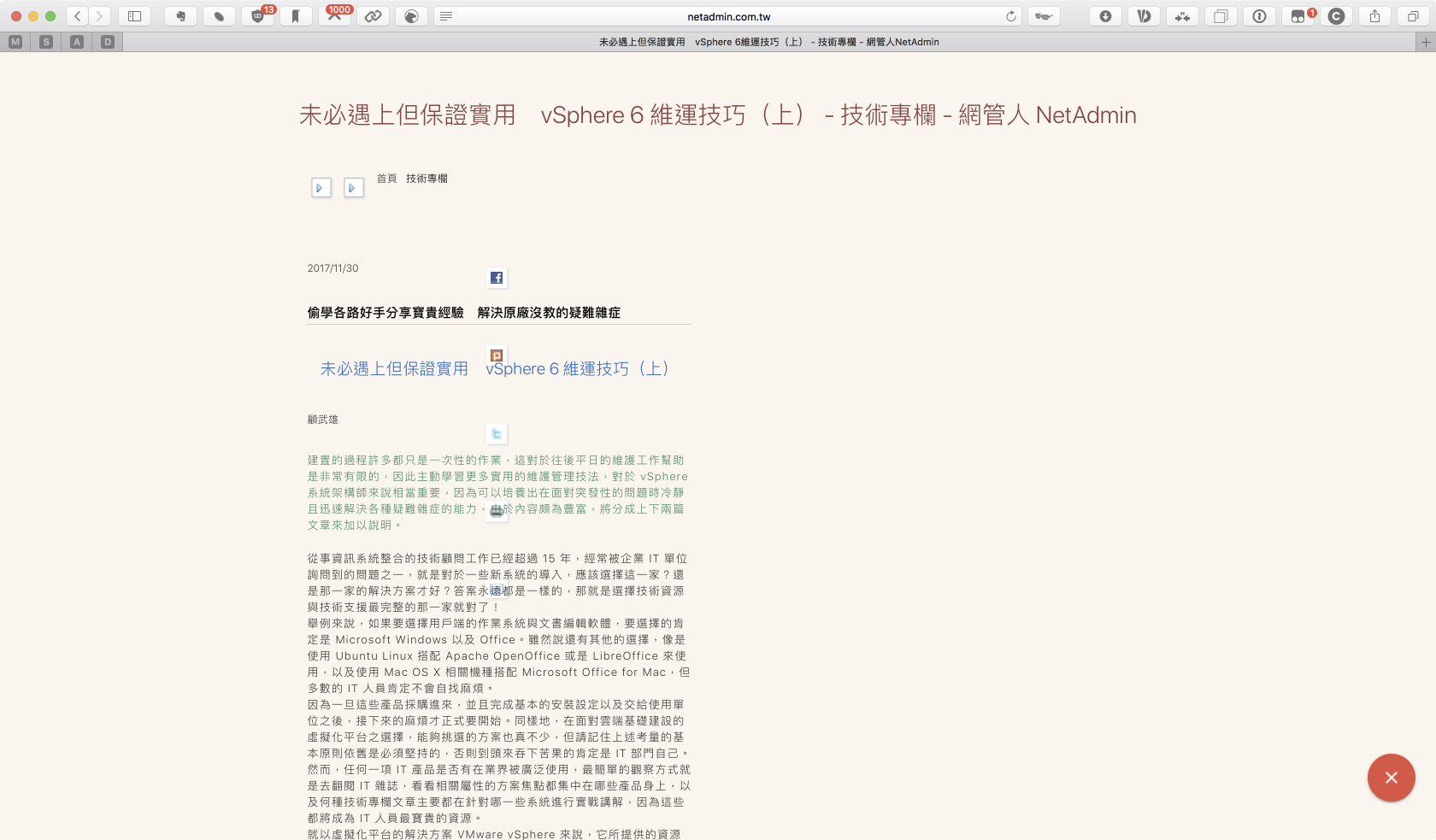 我找了個蠻常閱讀瀏覽的網站(網管人NetAdmin),隨機選了一篇專題文章:《未必遇上但保證實用 vSphere 6維運技巧(上)》來測試一下。除了頁面排版稍微再複雜一些,另外還做了分頁處理。測試下來,就真的差異很大了: