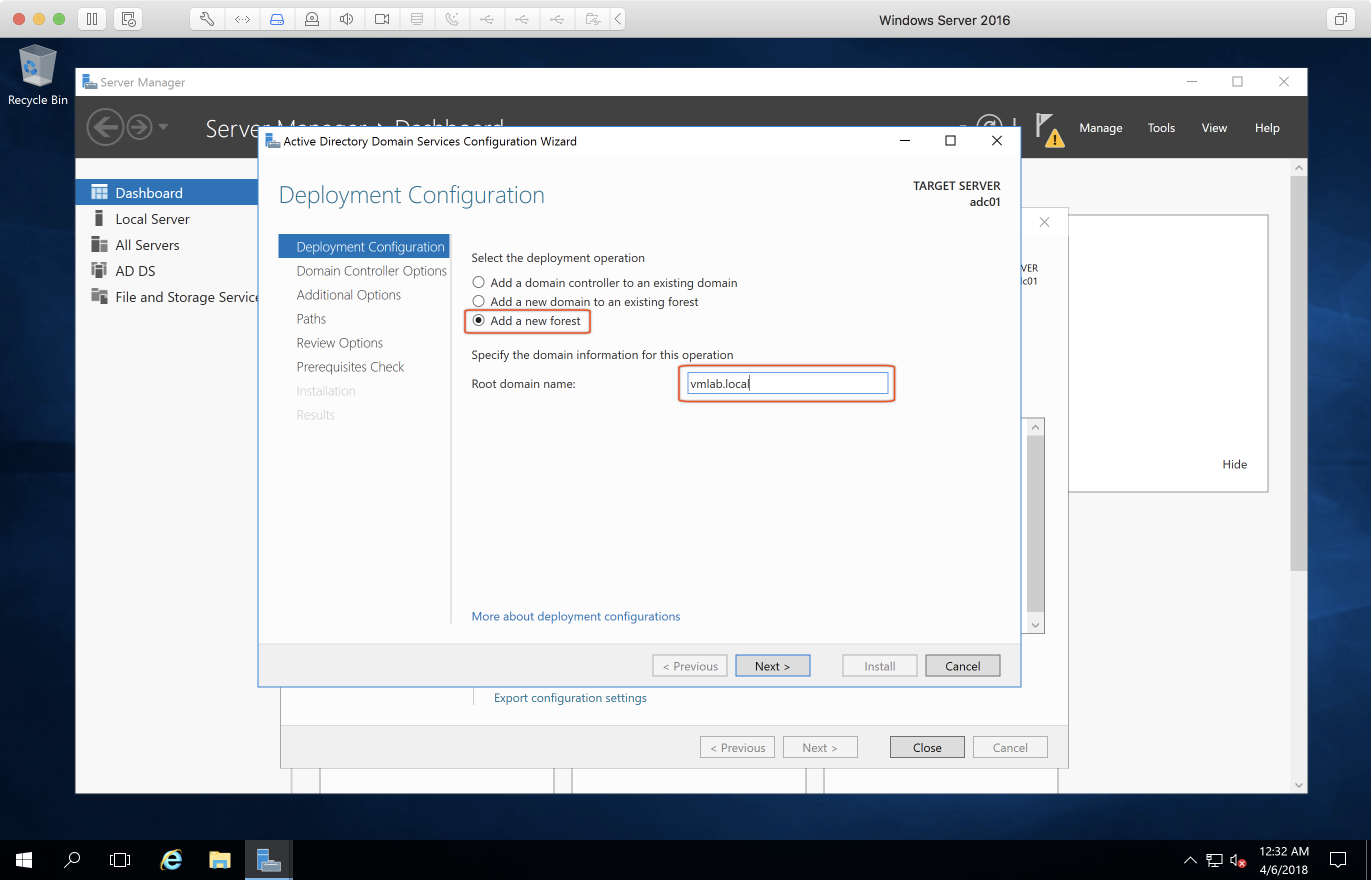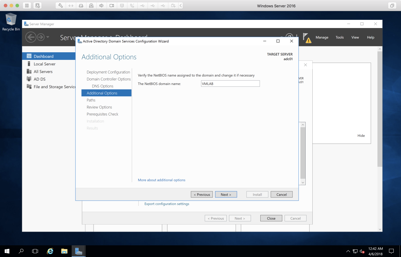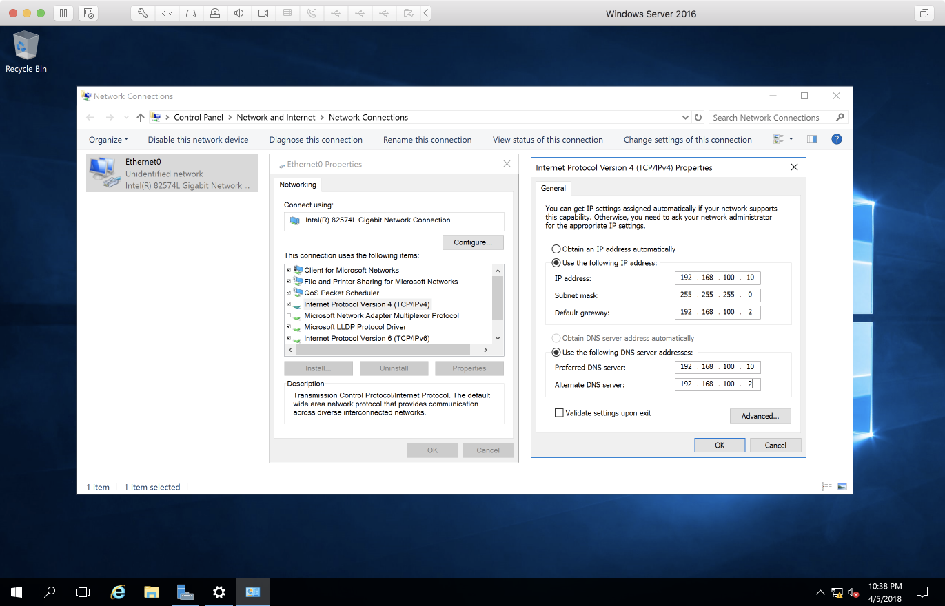 - 網路卡選擇 VM Network,IP 設為 192.168.100.10,Host name 則是 adc01