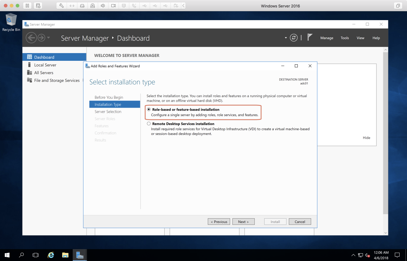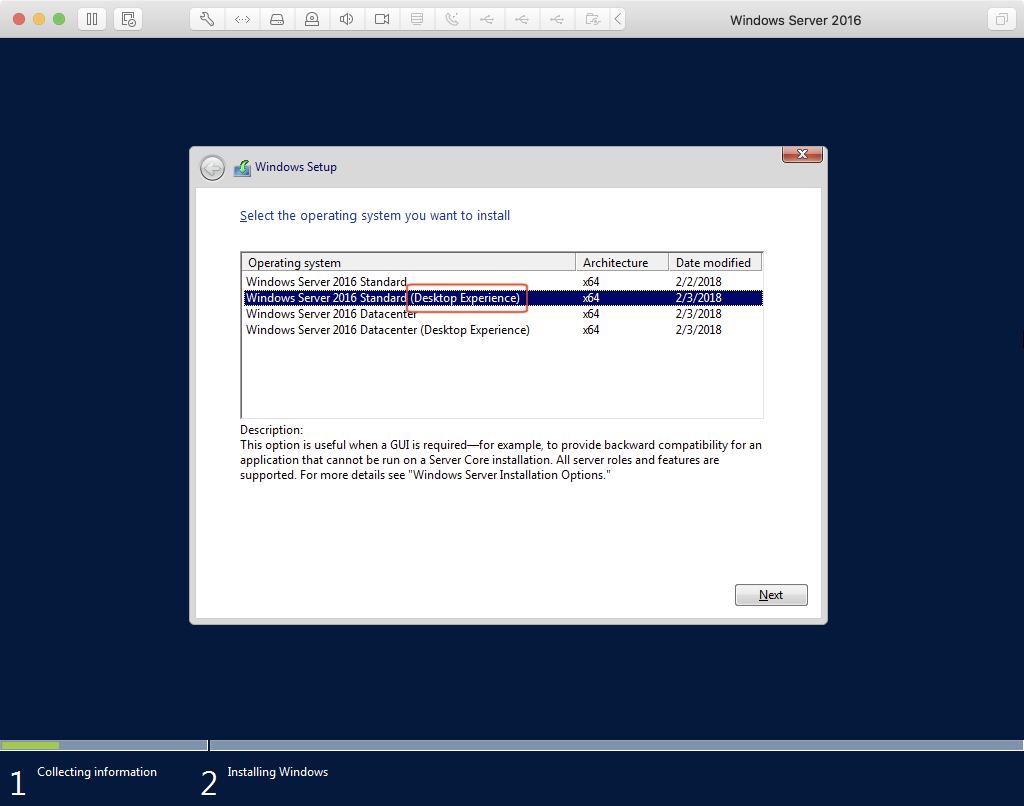 - 選項要選「Desktop Experience」含 GUI 介面,否則只會安裝 Server Core(參見:What is Server Core? | Microsoft Docs)